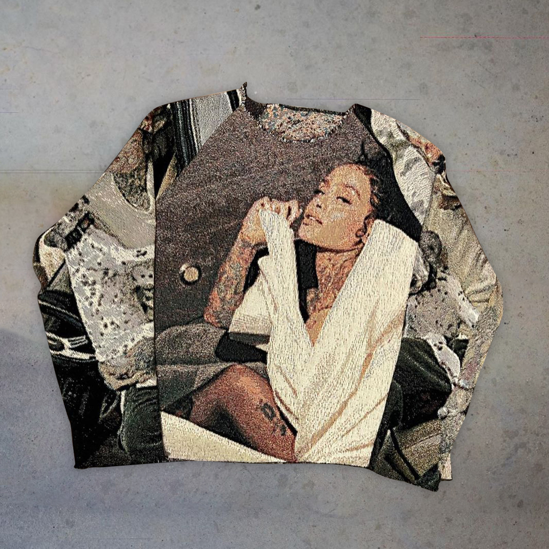 Trendy retro print tapestry sweatshirt