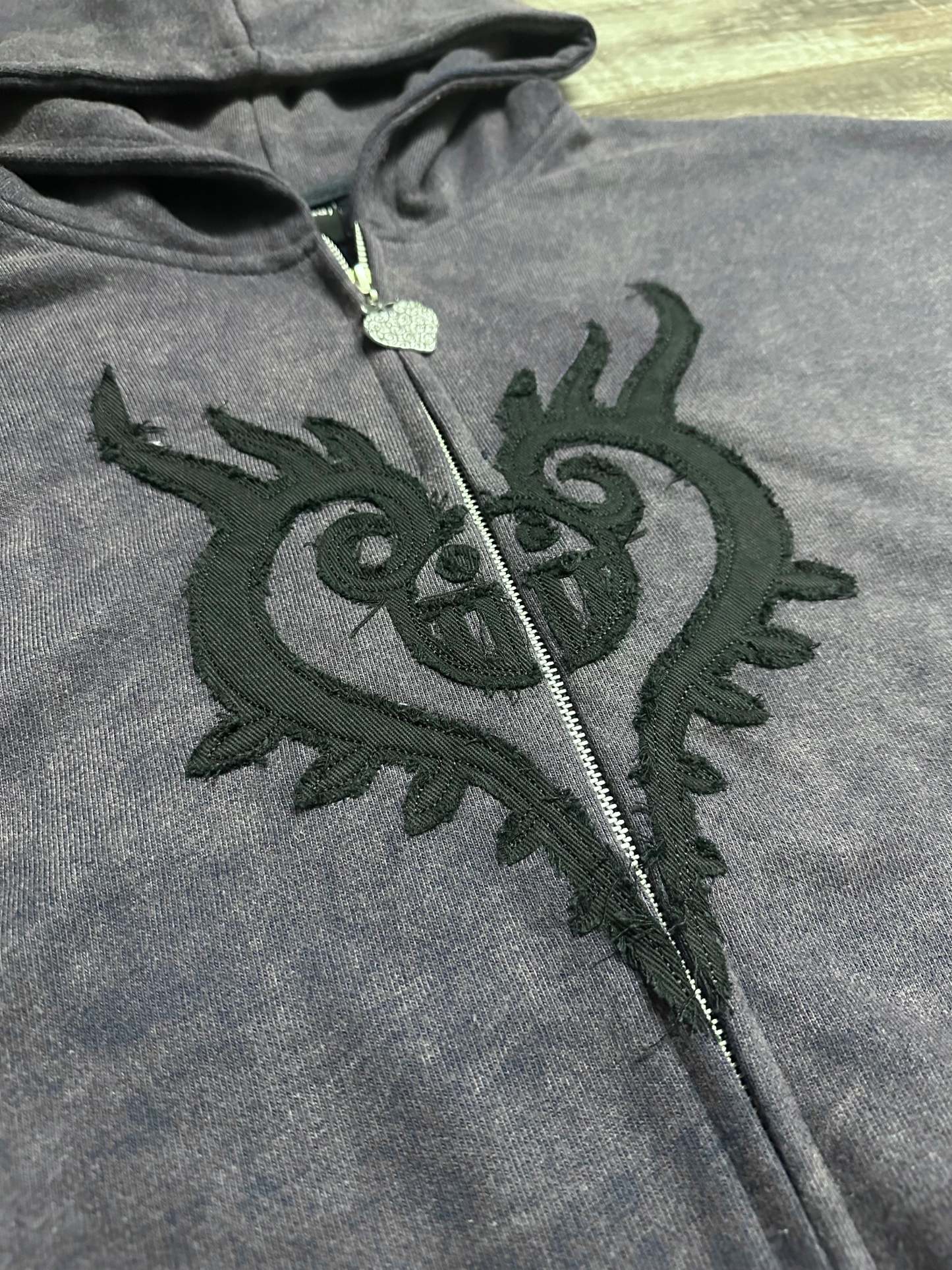• Embroidered heart skull on chest