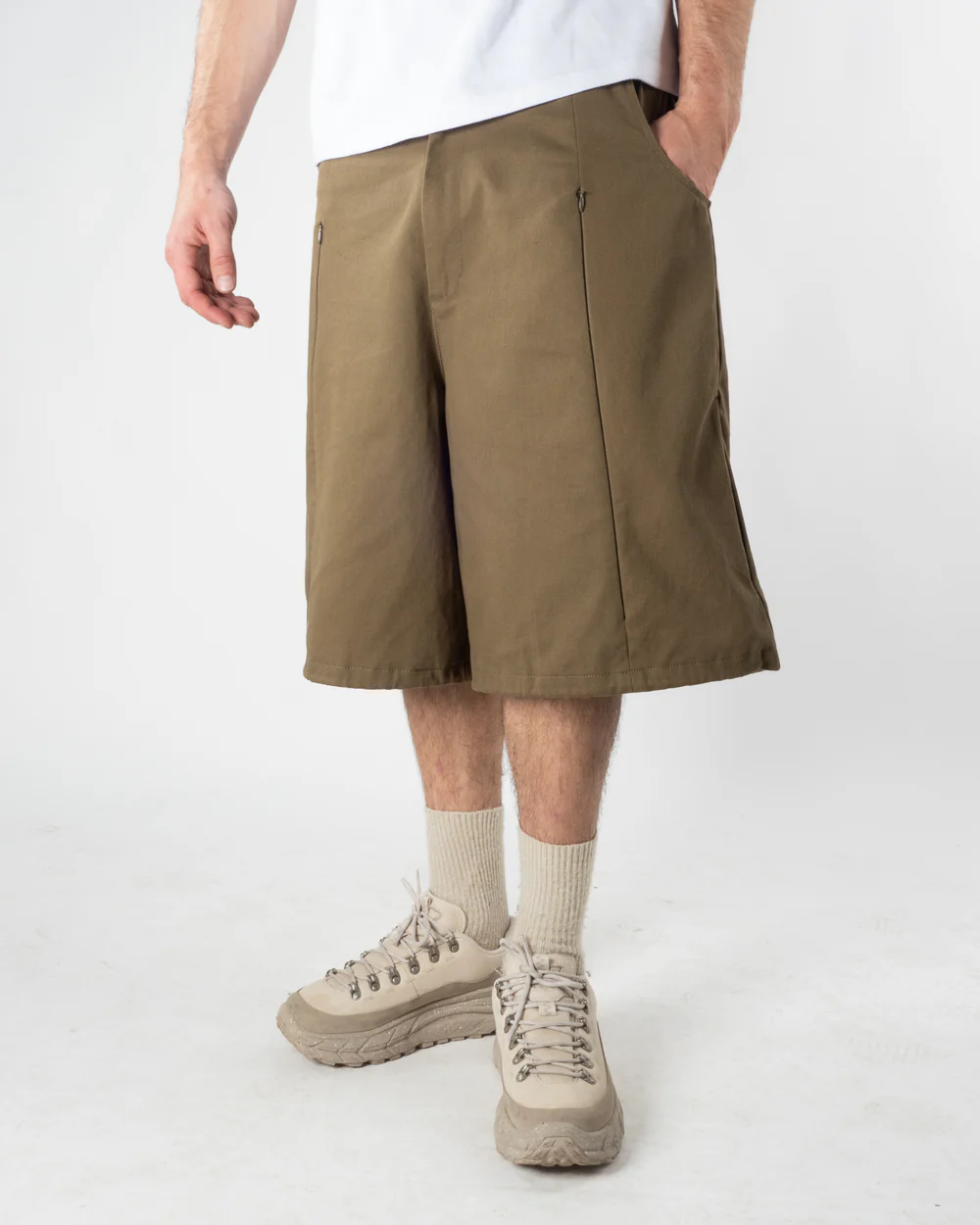 • Classic khaki color with a clean, minimalist look.