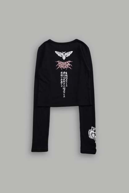 Moth Kanji L/S "Baby" Tee in Black